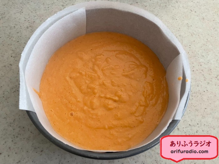 人参の色が綺麗〜。でも米粉の量をかなり減らしたので生地が水っぽい💦大丈夫かなぁ…