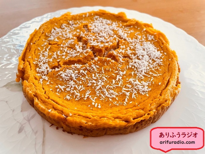 予想通り膨らみの少ない水分多めの焼き上がりになりました。粉糖をトッピングしようと思ったら在庫無し🤣 ココナッツファインを散りばめました。