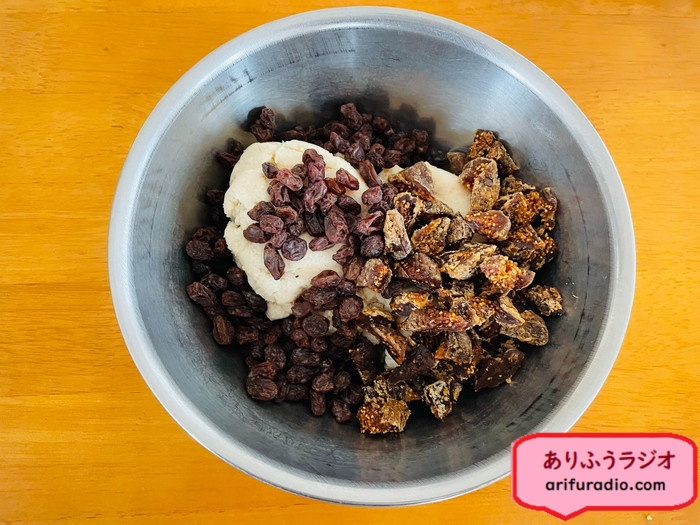 今回は、さらにイチジクとレーズンの量を増やして作りました。具沢山で混ぜにくく手首が痛くなりました🤣