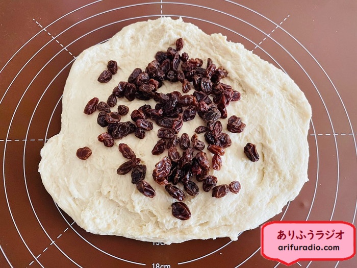 レーズンは湯通しして柔らかくしてから生地に混ぜ込みました。