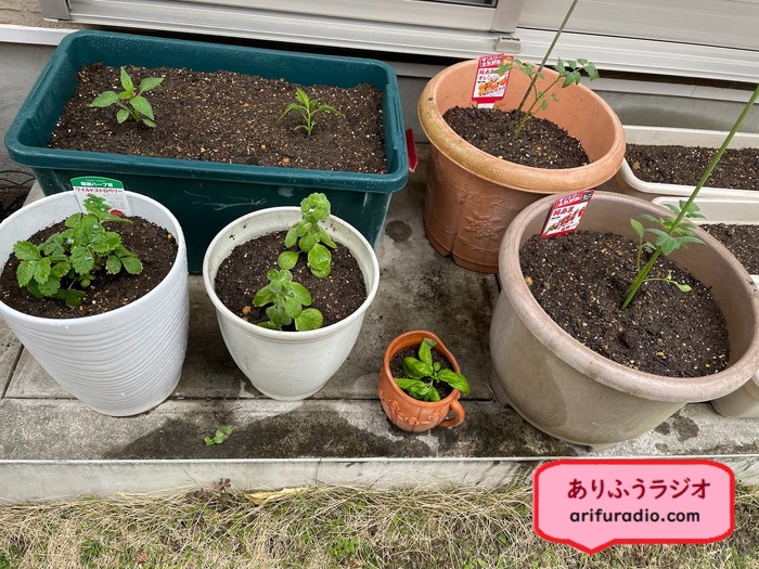 暖かくなってきたので、冬の間、家の中で大切に育てていたハーブ🌿を土植えして外に出すことにしました。
