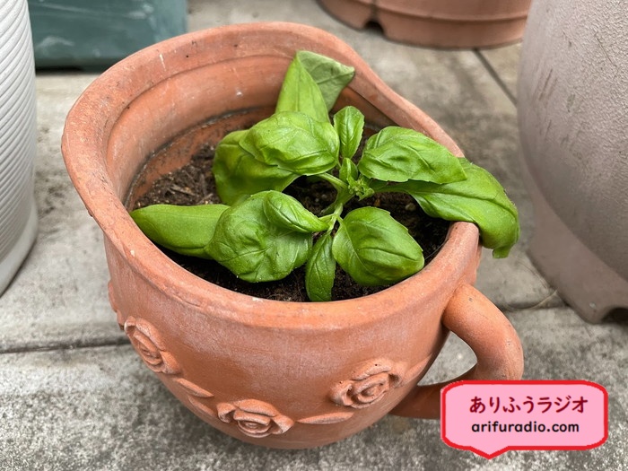 しっかりと根が出てきたバジル⬆️を鉢植えに⬇️