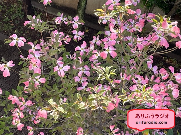 その向かい側にはピンクのハナミズキ⬆️も咲いていますが、陽当たりのせいなのか毎年ちょっぴり寂しい咲きっぷりです。