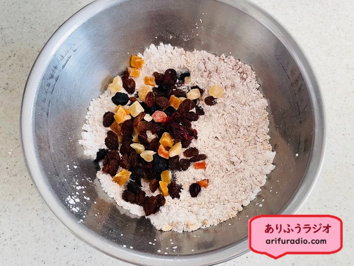 甘みはエリスリトールを少しだけ入れましたが、ドライフルーツの甘さで充分美味しいです。